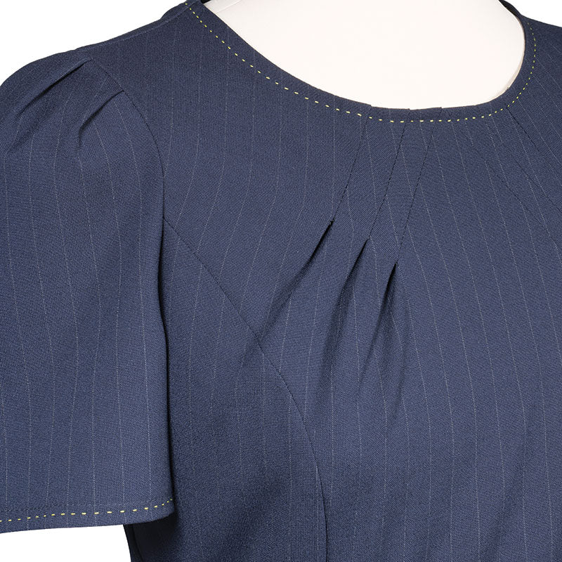 - Adding saddle stitching to neckline, sleeves, and belt of dresses
