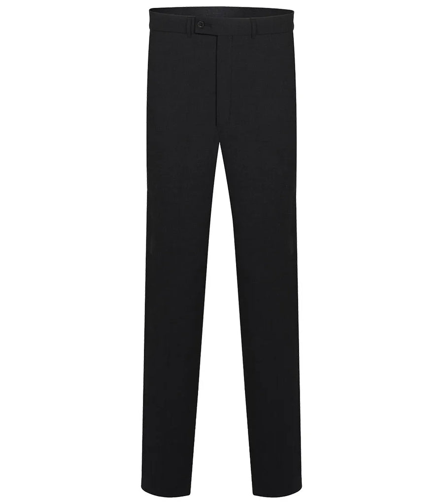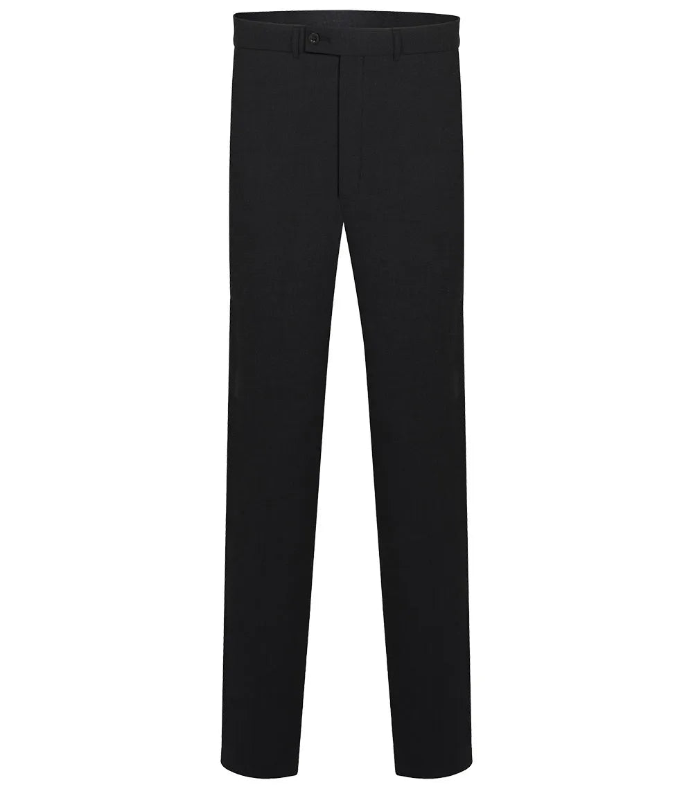 This pair of trousers features a timeless flat front design and a slim leg cut. It also includes two side pockets and one back pocket for your convenience.