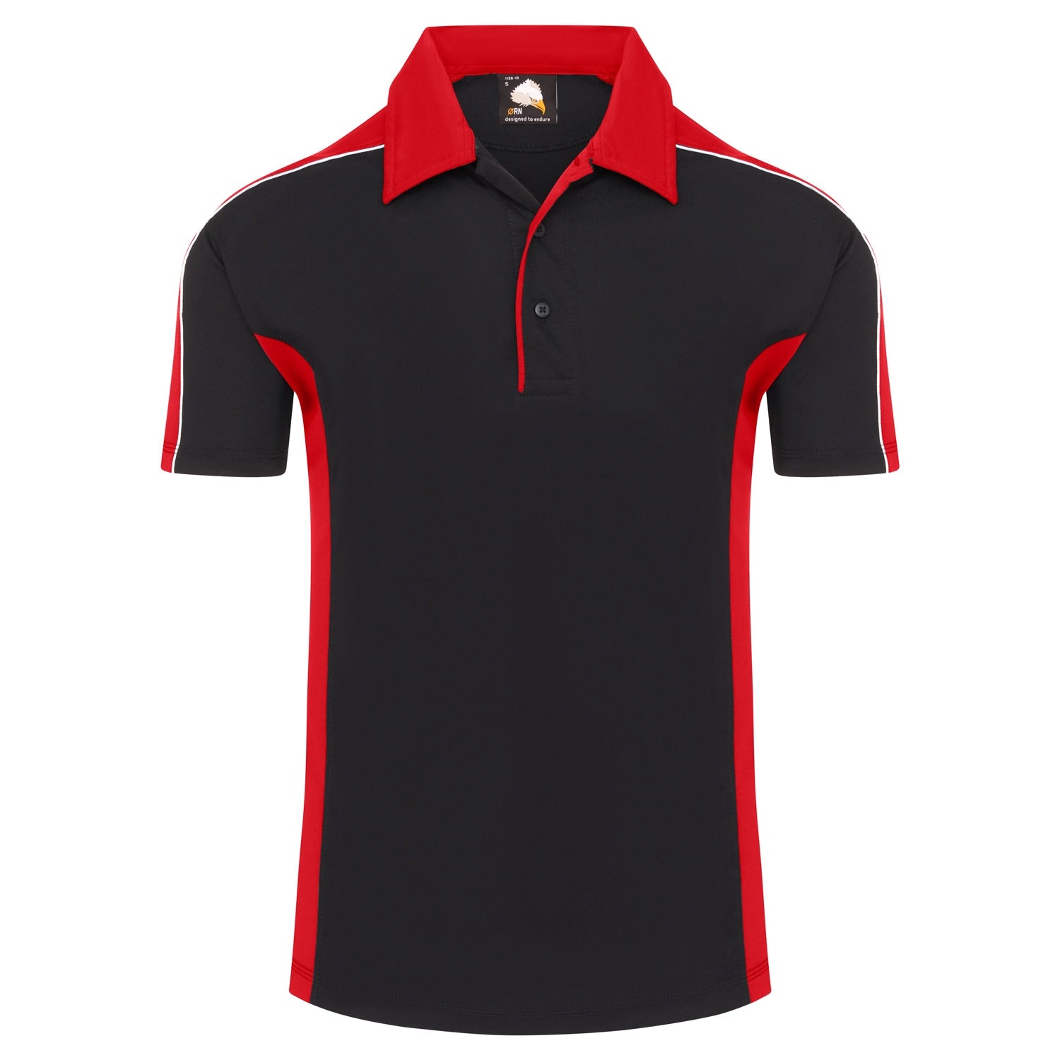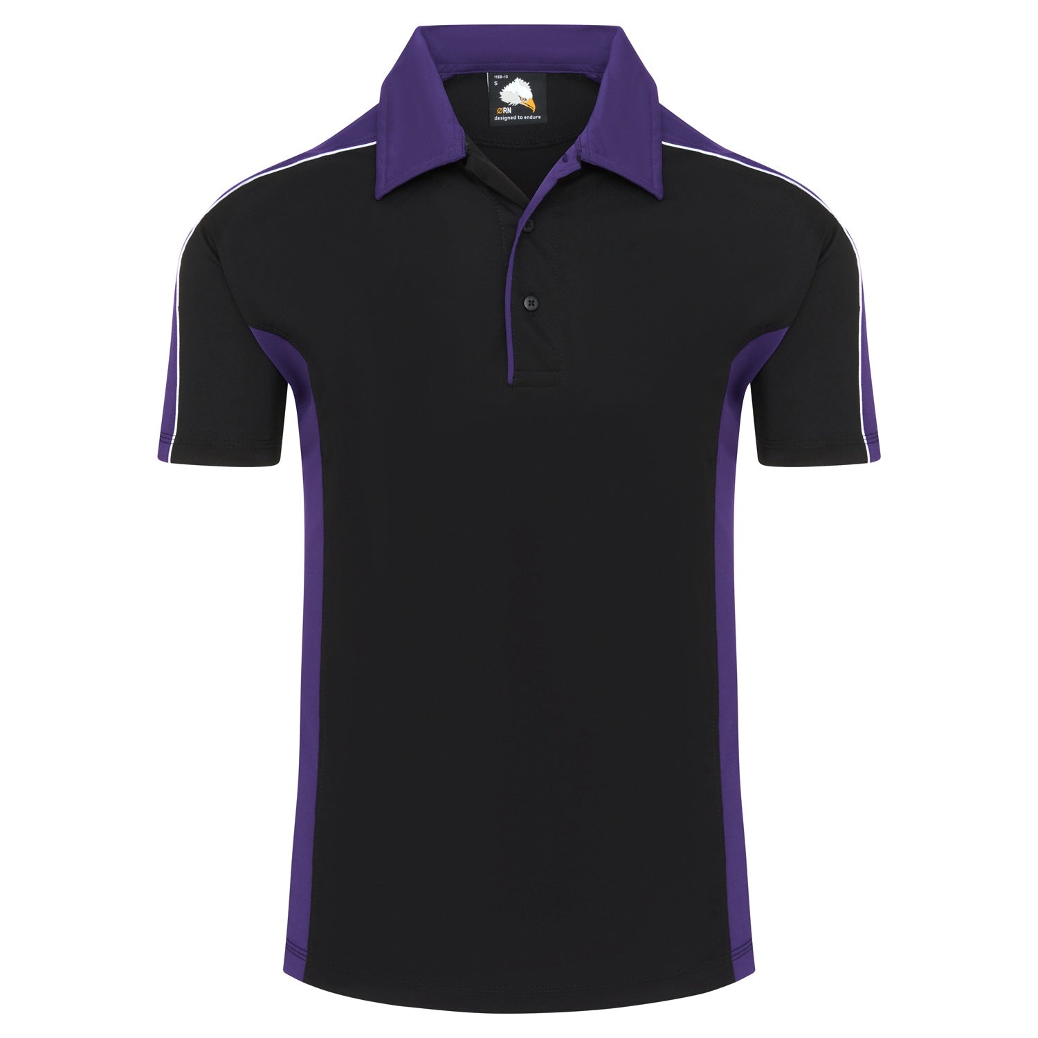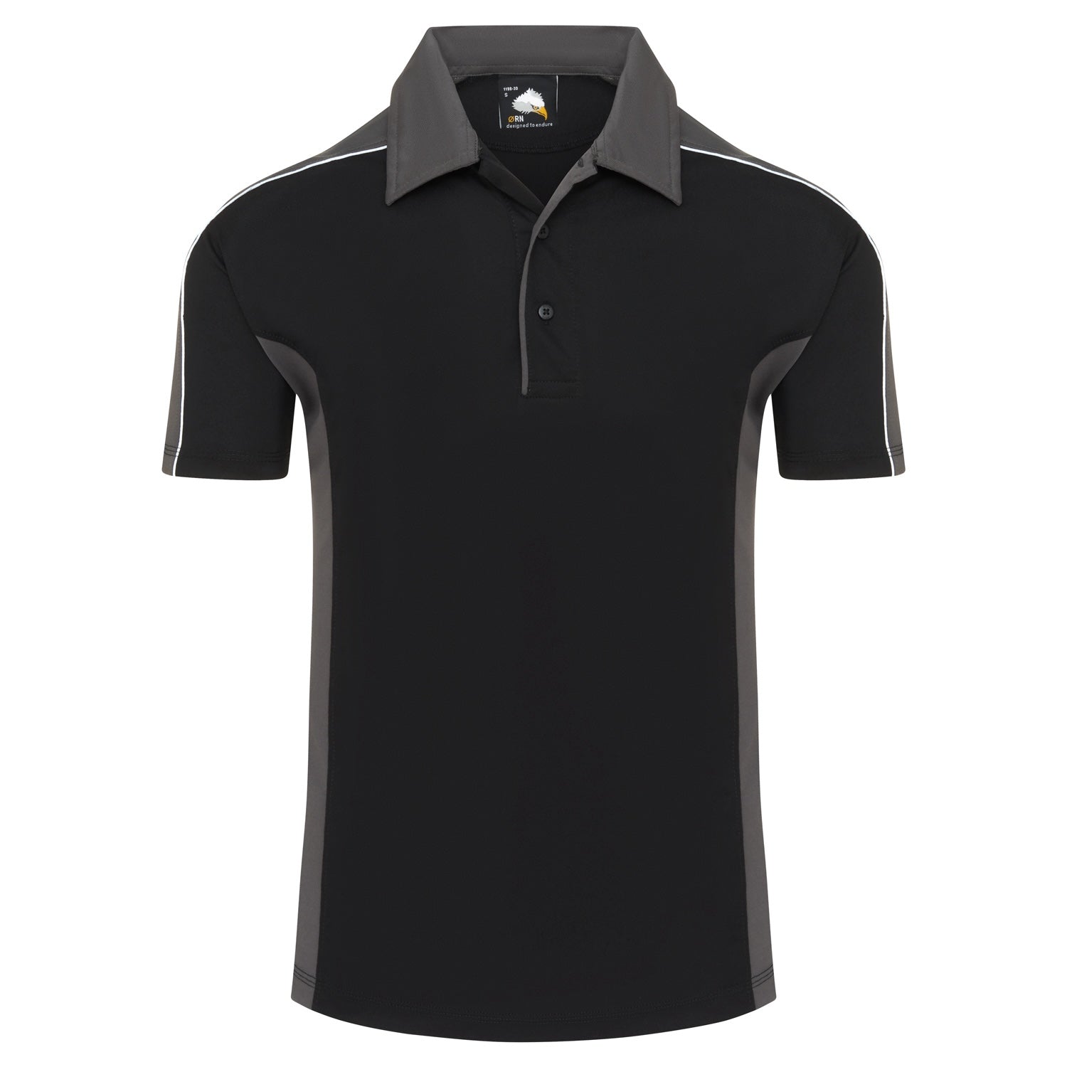 • Matching contrast side panels and trim on placket
