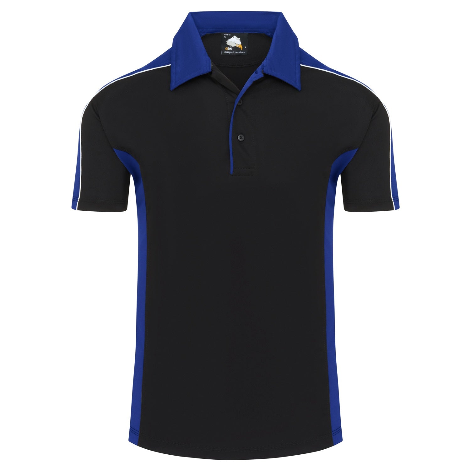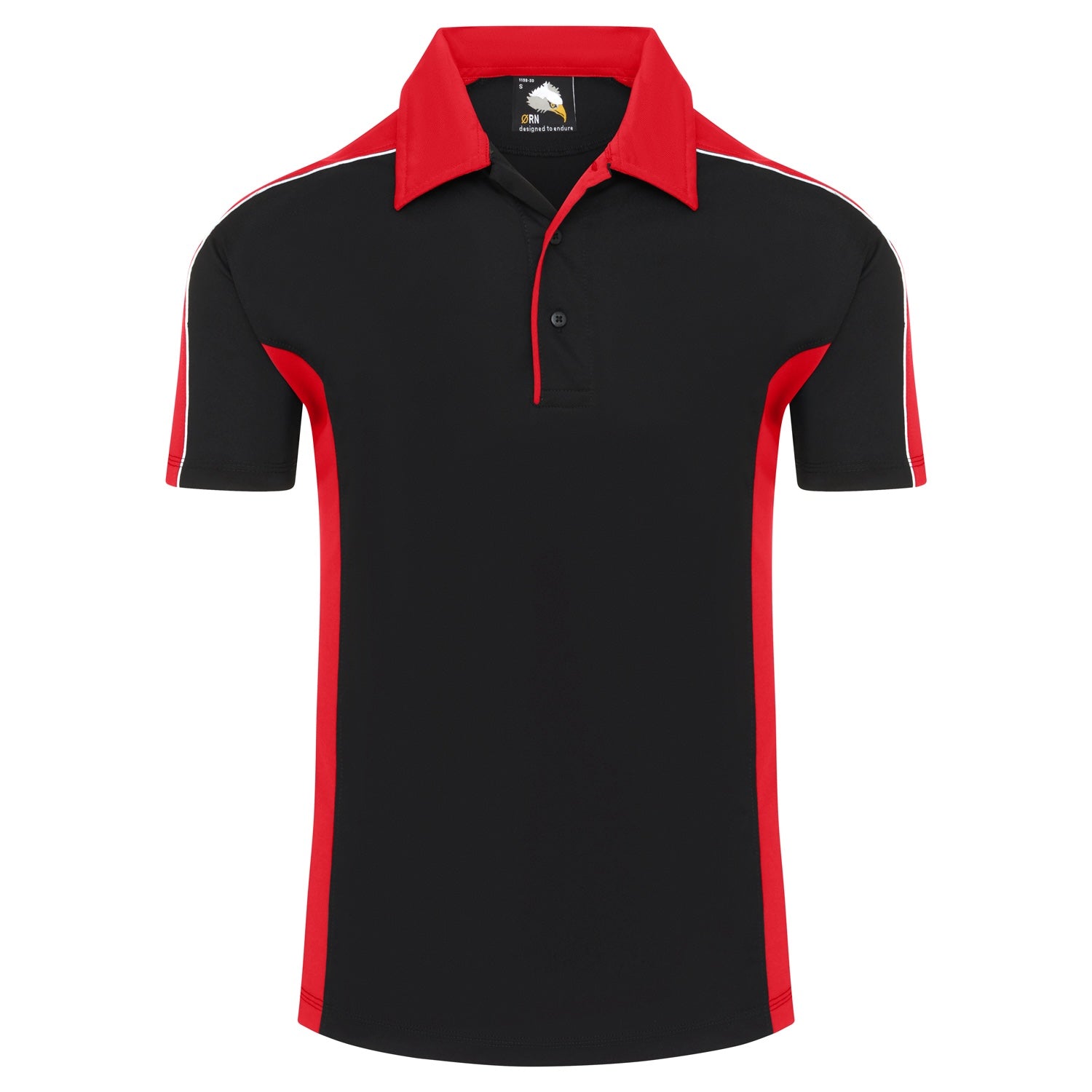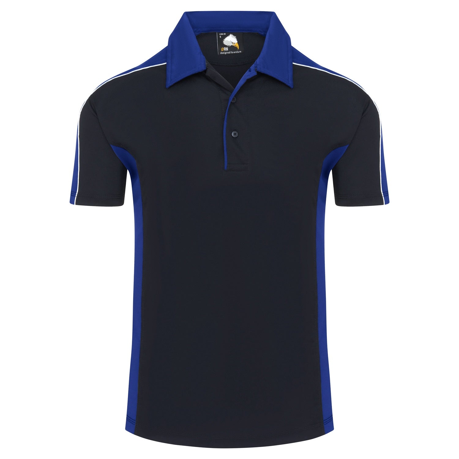• Matching contrast side panels and trim on placket