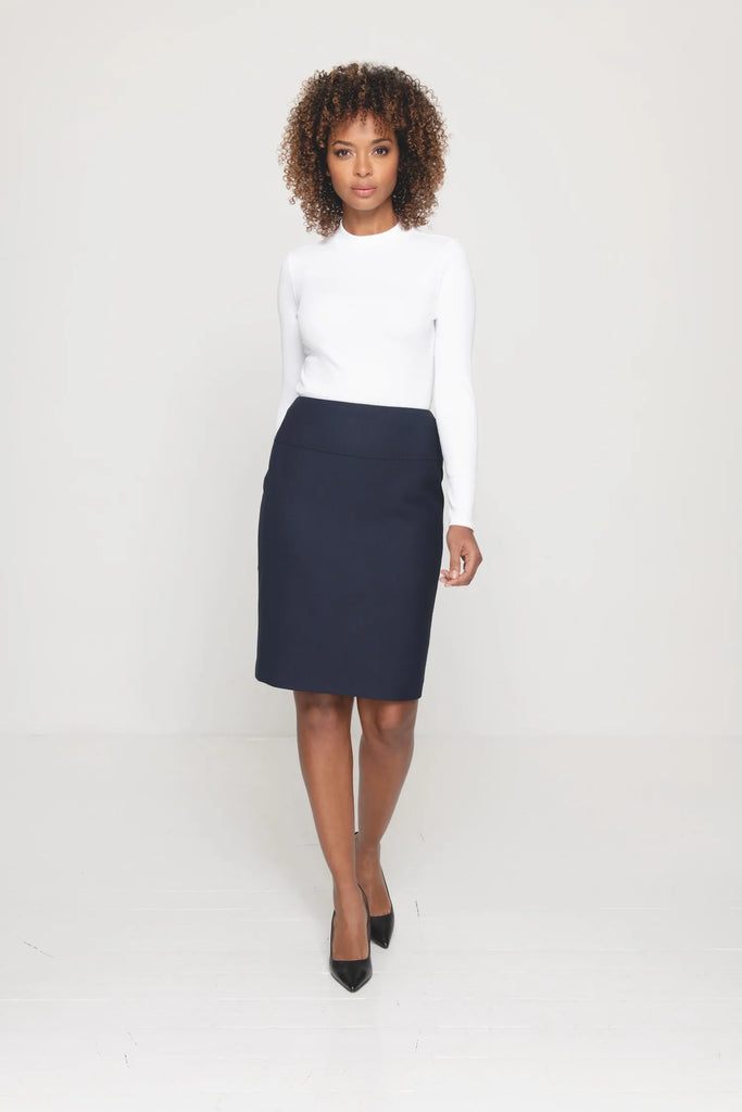 The classic formal skirt remains a true hero piece. Shaped with a figure skimming fit, this chic skirt is designed to sit just below the knee.