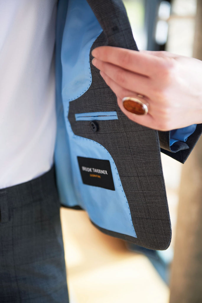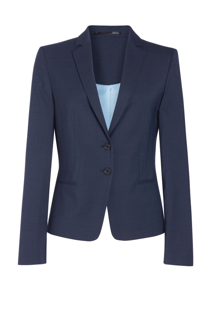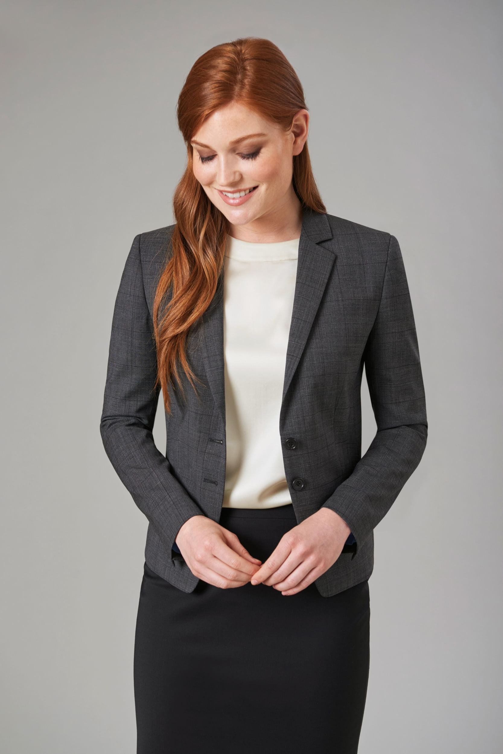 Short, slim fit 2 button jacket with cutaway front, slim notch lapel, front breast darts, jetted pockets, plain back, tailored back panels, 1 inside pocket