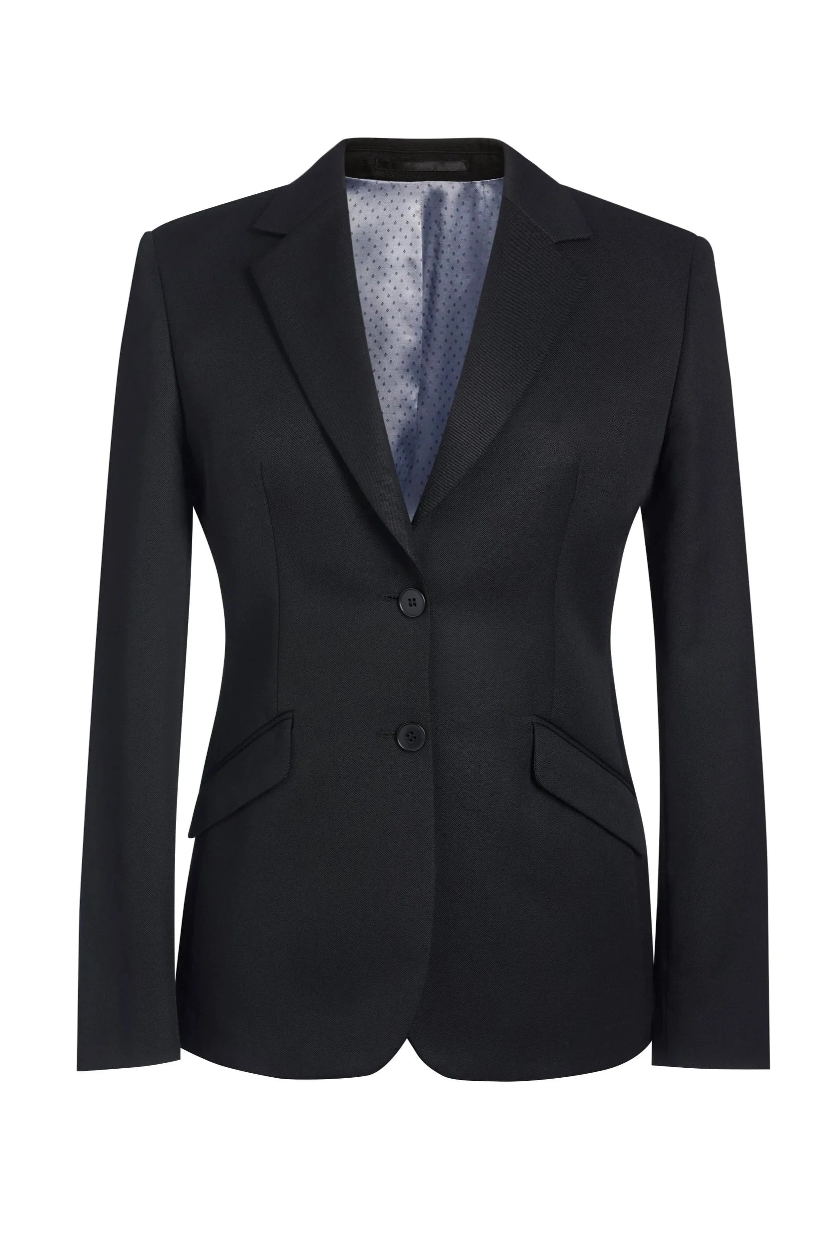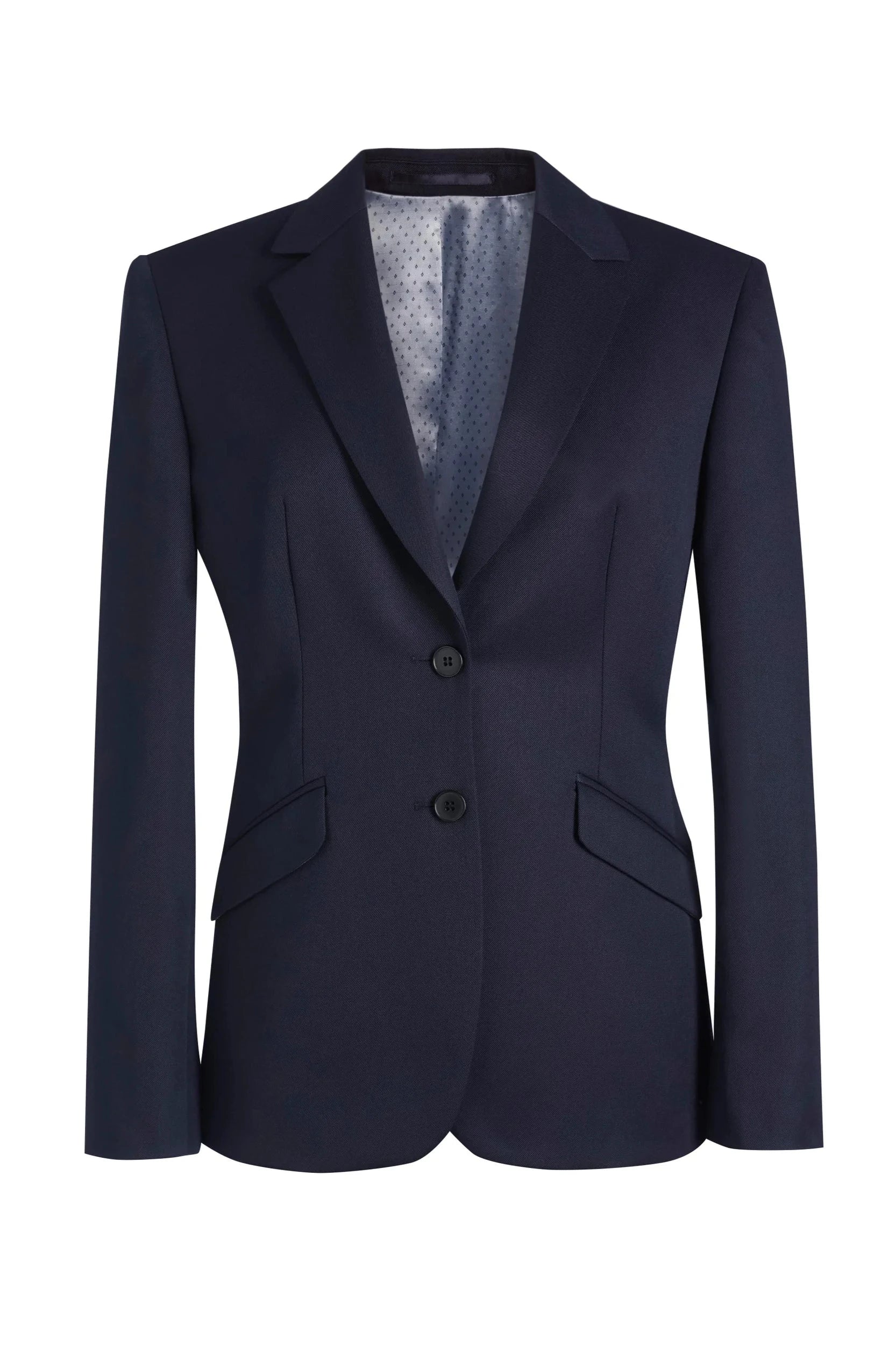 2 button classic fit jacket, notch lapel, 1 inside pocket, centre vent.