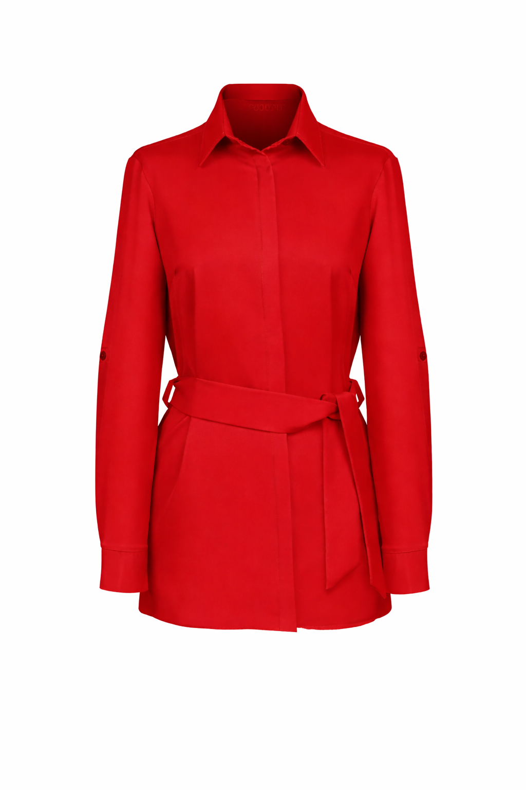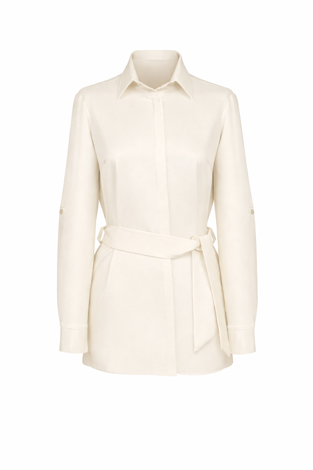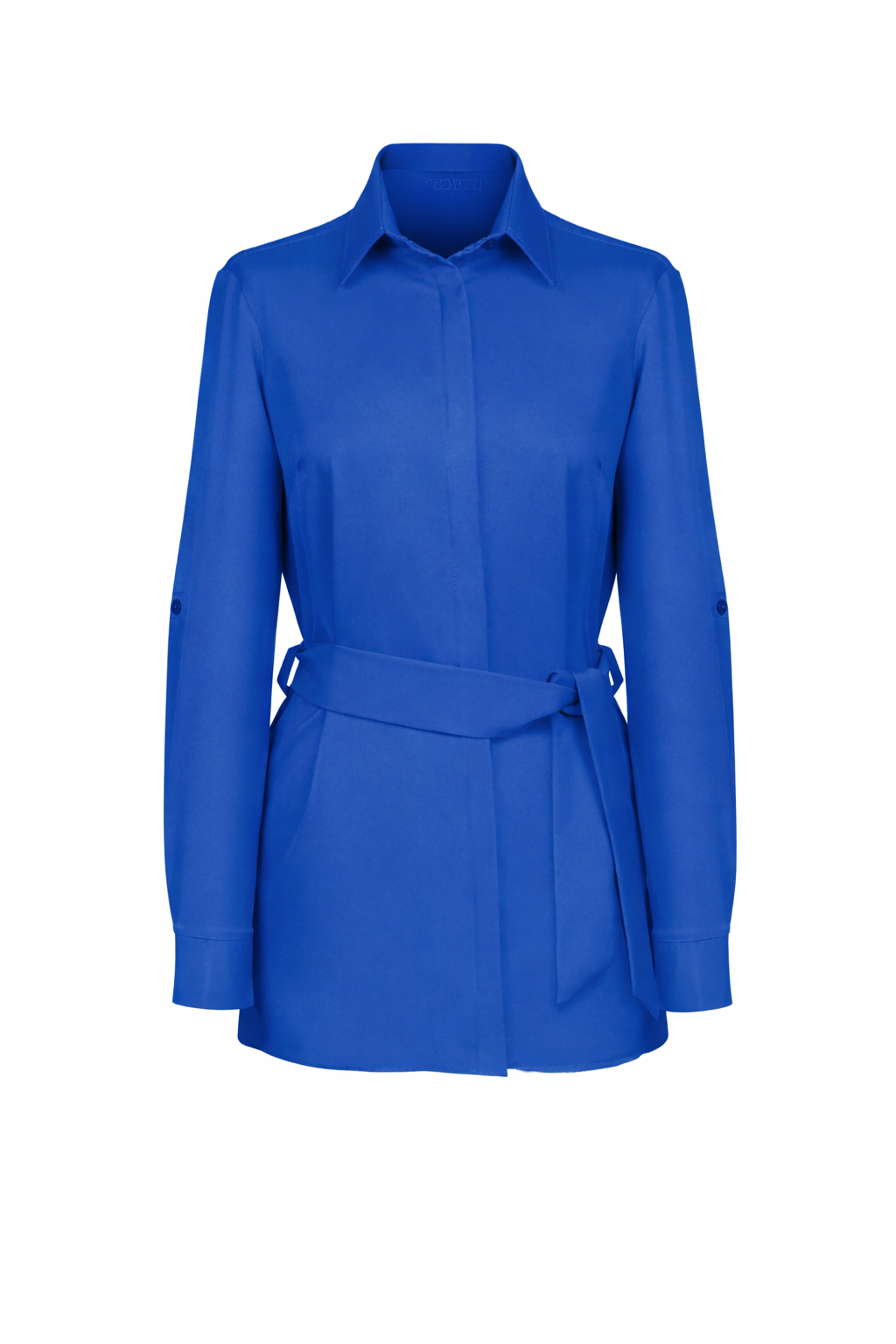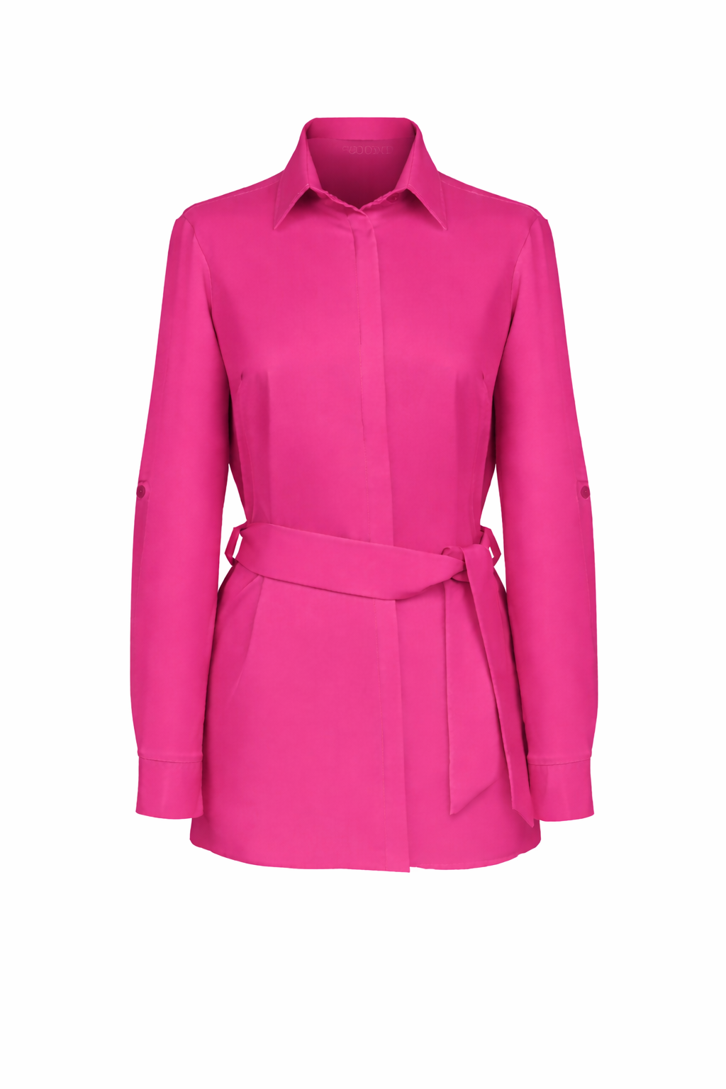 Elevate your wardrobe with this Long Sleeve Tunic featuring roll back sleeves and a tie belt. This versatile piece adds elegance and simplicity to any outfit and is a smart and stylish choice for any occasion.