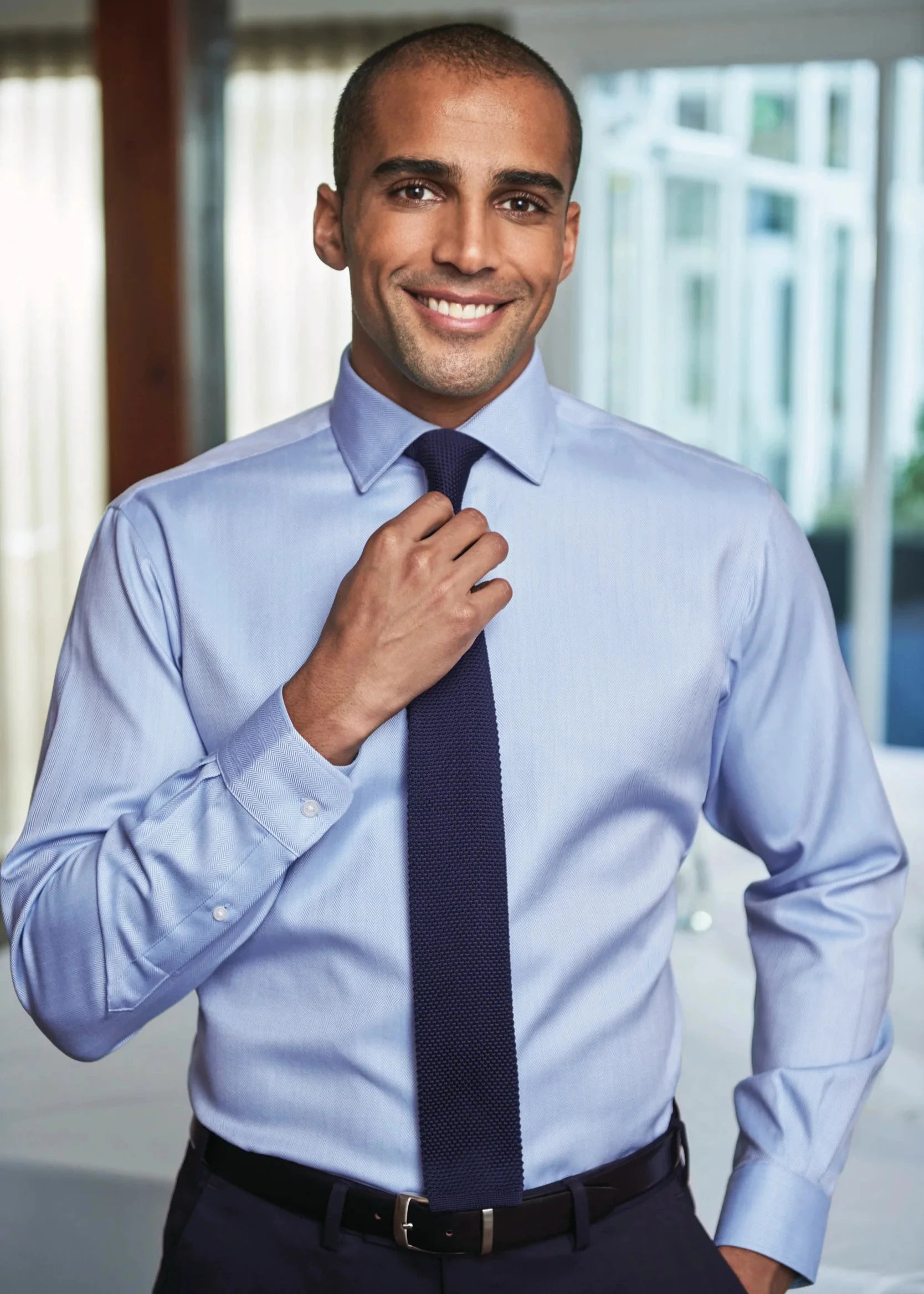 Complementary silk cuff knots, taped seams, removable metal collar stiffeners.