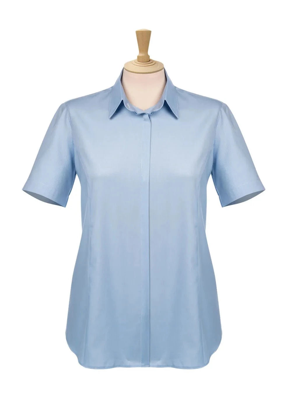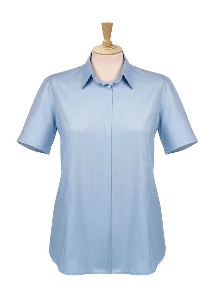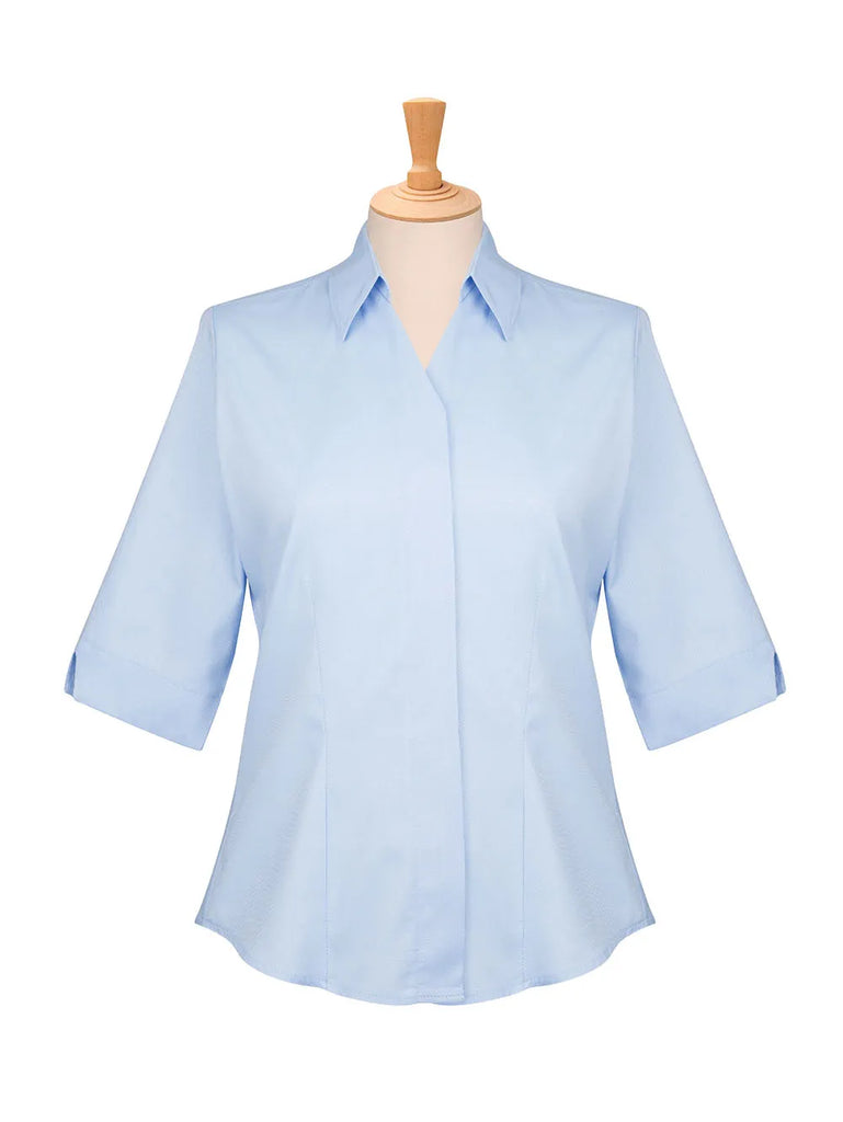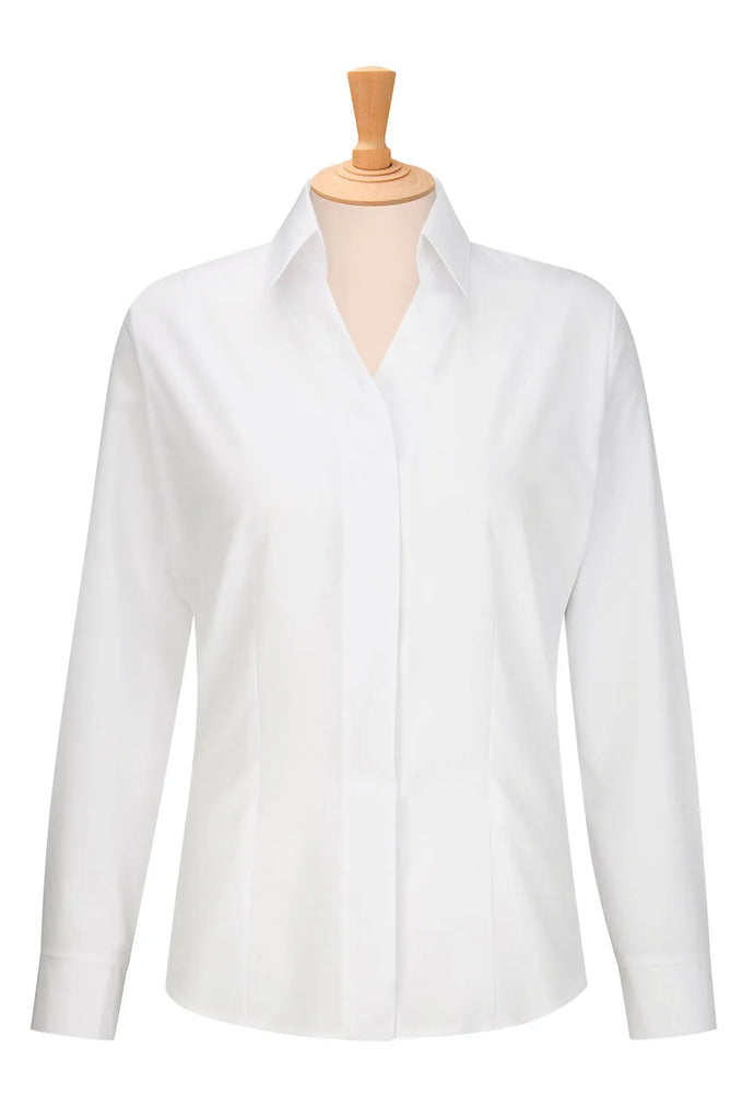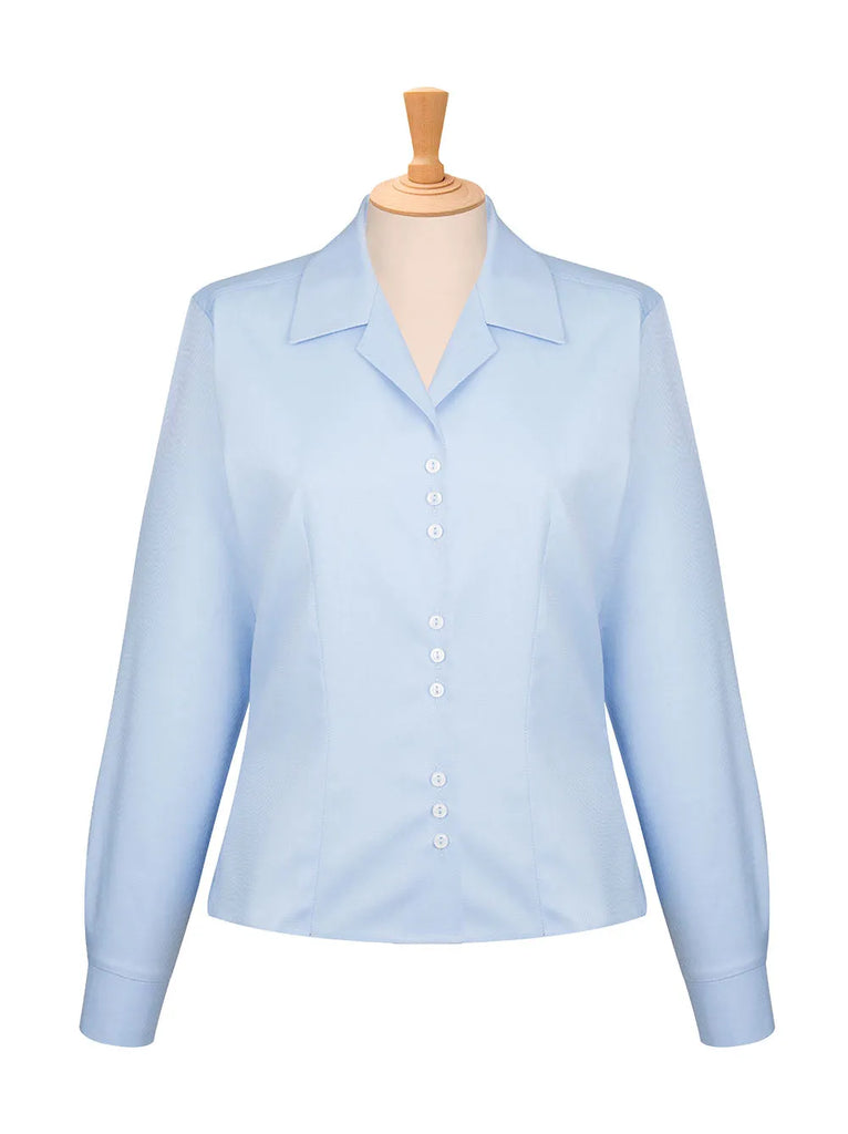 This Long or Short Sleeve Shirt Style Blouse features feminine shaping panels on the front and a button through style.