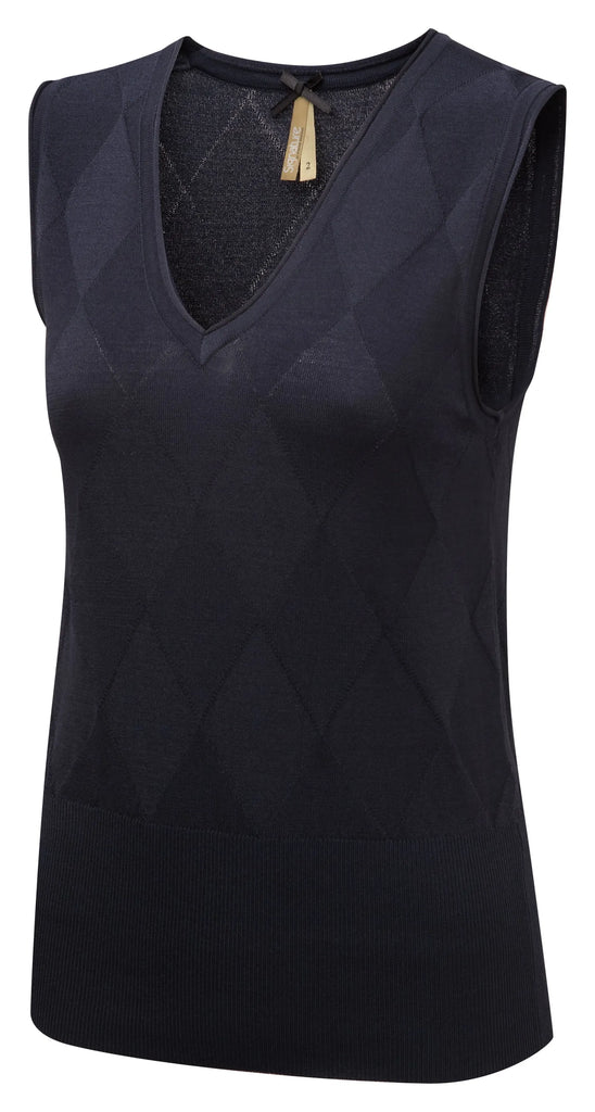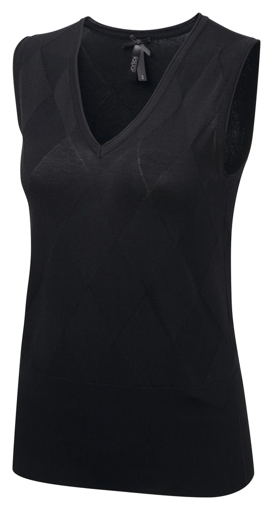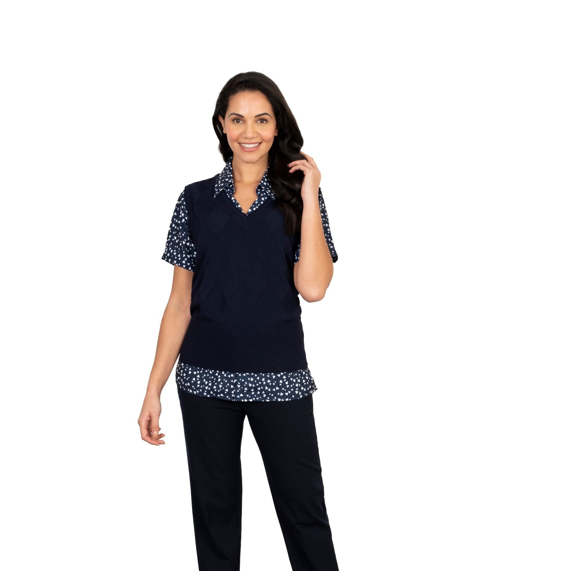 This classic tank top is a wardrobe favourite. It has a smart diamond jacquard motif on the front & back. Pair with one of our blouses for a great corporate look!