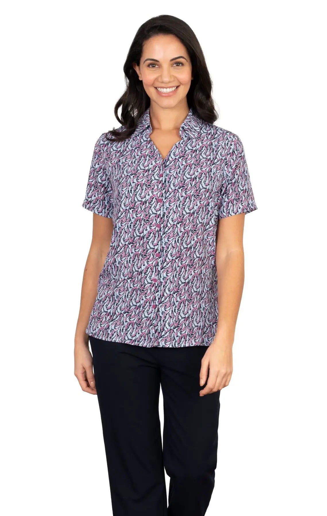 Willow printed soft touch crepe blouse with a flattering and feminine V neck. Finish the look with our Rachel cardigan or Talia tank top to show you mean business!